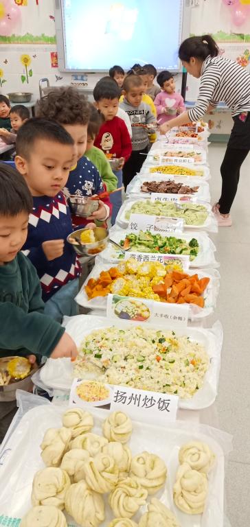随着生活水平的提高,孩子的健康问题成为了社会普遍关注的问题,幼儿挑食、厌食,对油炸食品的偏爱,对饮料的热衷,导致了幼儿肥胖、体弱等不良体质。为了引导幼儿学习健康饮食、合理饮食的良好习惯,从被动的吃变为主动的吃,并且吃的快乐、吃出健康。同时还可以引导幼儿了解自助餐的礼仪和培养幼儿文明饮食习惯,养成会分享、能互助的行为习惯,12月27日我园开展了小朋友的自助餐活动。