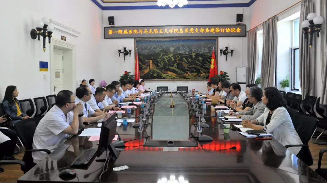 校领导贾文霄、王爱民参加了签约共建会议。马克思主义学院、第一附属医院相关领导和共建基层党支部书记、部分党员代表等20余人参加签约仪式。