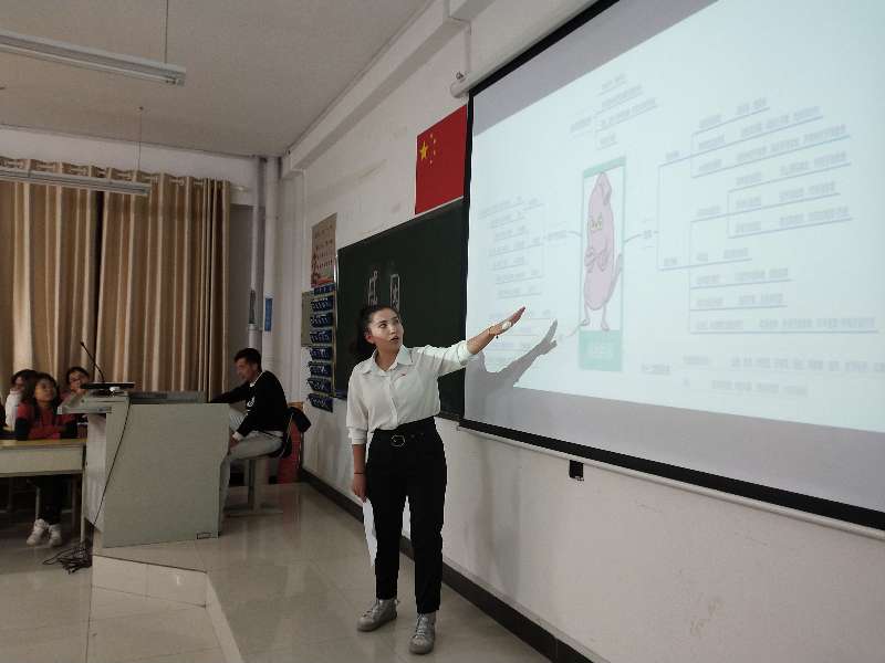 比赛中,2016班/2019直升本班学生分成6个小组,对所学的胃系疾病知识点进行整理,并结合主题绘制思维导图,每组组长用PPT对思维导图设计思路、知识点,主题总结进行了介绍和讲解,经过评委的认真评选,第五组学生获得总分第一名的成绩。