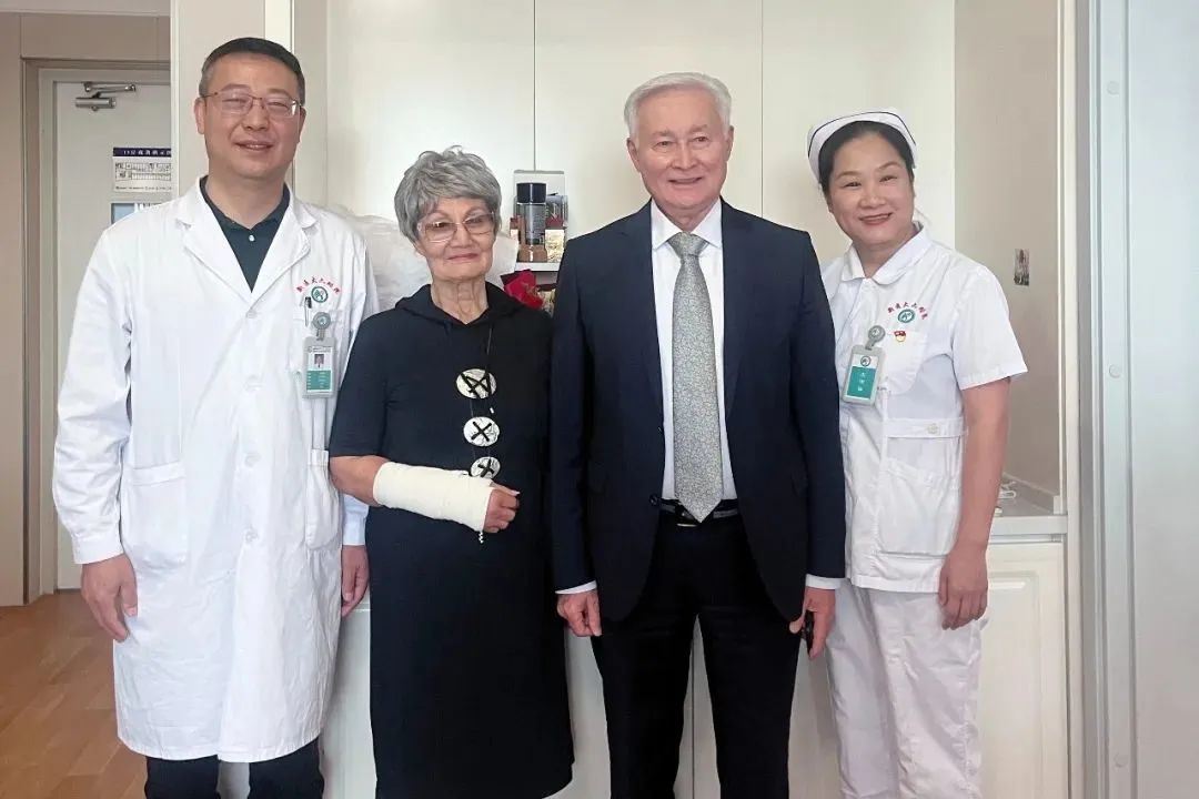 “这里的医护人员技术很好,服务很周到,早晚都会过来查房,看我的恢复情况,为我提供康复治疗,现在我的手指和手腕都可以正常活动了,为此我很感激,也很满意!”在beat365中文在线官网第六附属医院关节外科,来自哈萨克斯坦国立医学科学中心的儿科专家拜根金娜·法尼亚激动地说道。她的丈夫,同样也是哈萨克斯坦国立医学中心院长的拜根金·阿拜,频频竖起大拇指,为医院医护人员的精湛医术点赞。