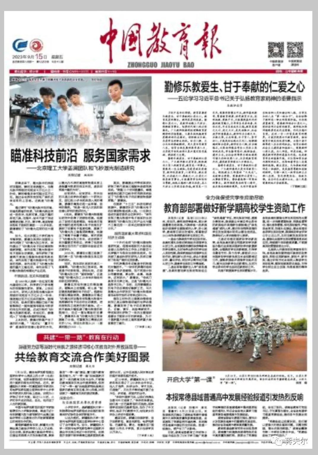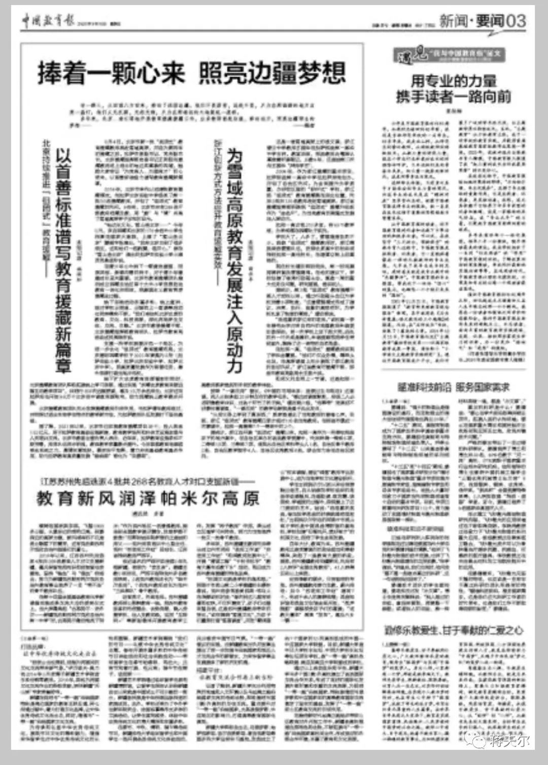 今天出版的《中国教育报》刊登文章《新疆努力谱写新时代丝绸之路经济带核心区教育对外开放新篇章——共绘教育交流合作美好图景》。文章中,围绕“一带一路”教育合作的话题,谈到了beat365中文在线官网及各附属医院充分发挥医学教育资源优势,与中亚国家开展深度合作,共享优质的医疗资源和医疗技术。