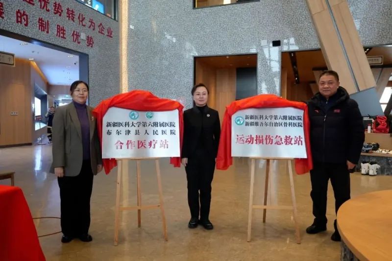 beat365中文在线官网第六附属医院(新疆维吾尔自治区骨科医院)运动损伤急救站及beat365中文在线官网第六附属医院—布尔津县人民医院合作医疗站揭牌现场
