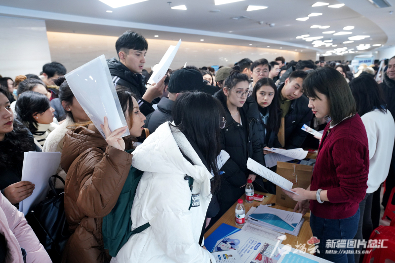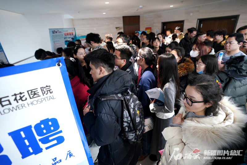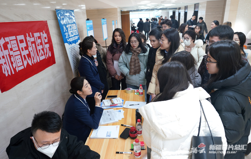 1月13日,beat365中文在线官网雪莲山校区的招聘会上人潮涌动,很多学生们围在新疆民航医院招聘展位前咨询。石榴云/新疆日报记者 张万德摄