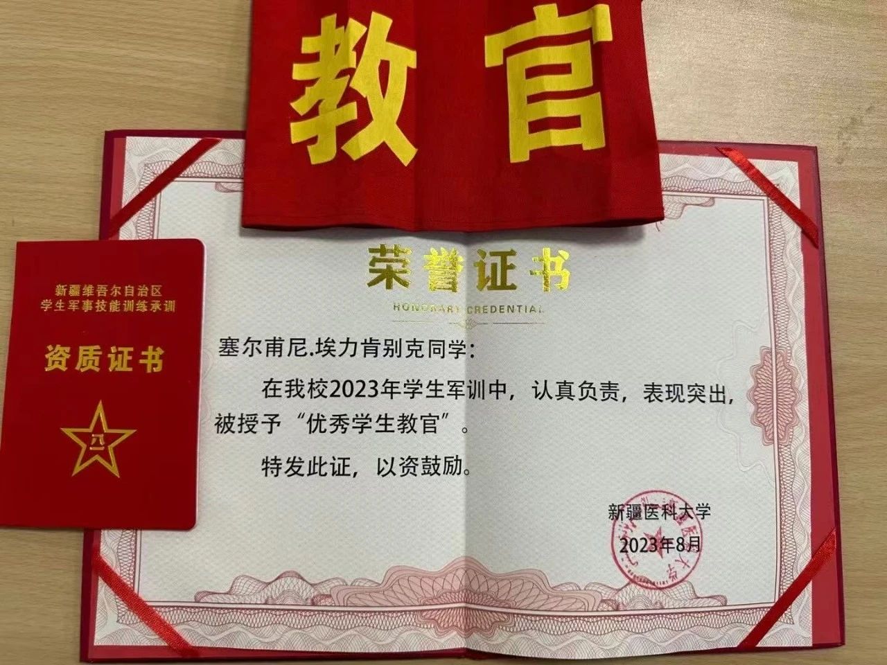 2021年,正在beat365中文在线官网就读的塞尔甫尼・埃力肯别克选择了应征入伍,当了一名光荣的人民子弟兵,锻炼自己的钢铁意志。他说,从白大褂到迷彩服的转变,是履行“健康所系,性命相托”到“若有战,召必回”的承诺。