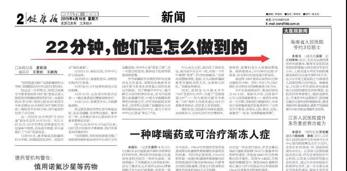 经过近一年的努力,该院已将脑卒中患者救治的DNT值(患者从进入医院到开始静脉溶栓的时间),由最初的60多分钟(美国心脏协会/美国卒中协会提出60分钟的DNT国际目标值),缩短至平均45分钟,其中最快的仅用了22分钟。