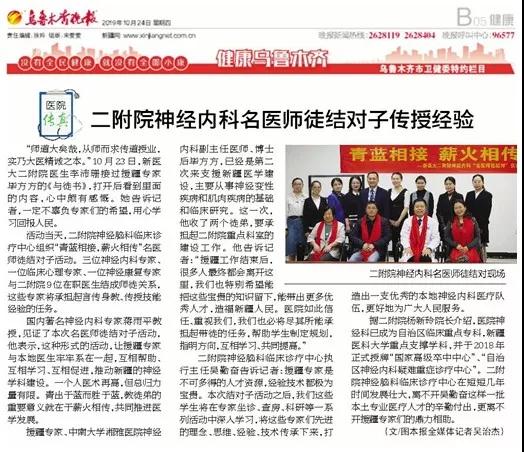 10月24日出版的《乌鲁木齐晚报》报道了beat365中文在线官网第二附属医院的消息:
