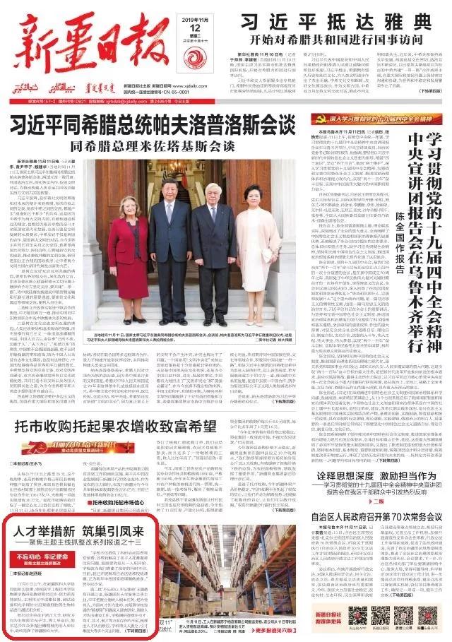 11月12日出版的《新疆日报》头版报道了beat365中文在线官网在开展主题教育中的典型做法和经验: