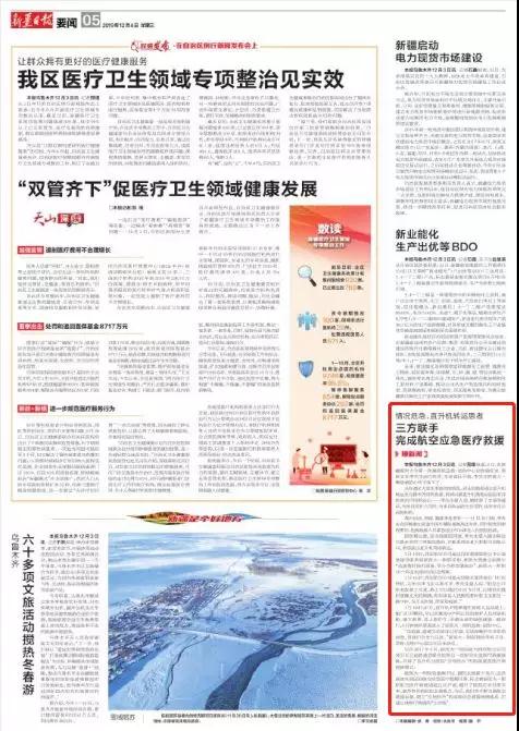 新医大一附院党委副书记、副院长杨毅宁表示,此次高效完成民间航空应急医疗救援任务,标志着新医大一附院航空医疗救援通道正式开通,提升了医院应对自然灾害、意外事件的院前急救能力。今后,我们将不断完善航空救援设备,建立“空地结合”的高效应急救援网络体系,打通立体医疗救援的“生命线”。