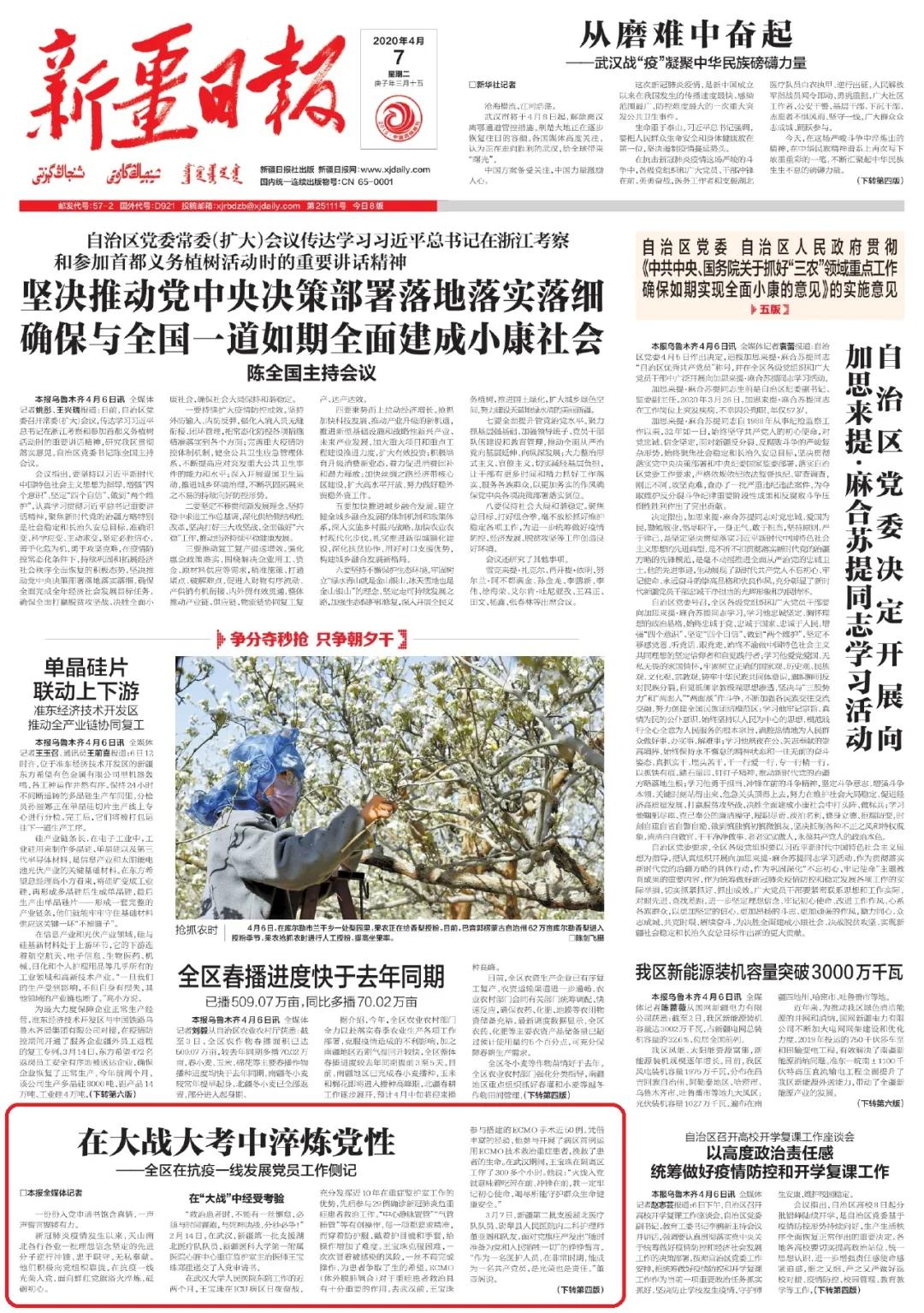 新冠肺炎疫情发生以来,天山南北各行各业一批理想信念坚定的先进分子逆行冲锋、忠于职守、无私奉献。他们积极向党组织靠拢,在抗疫一线光荣入党,面向鲜红党旗浴火淬炼、砥砺初心。