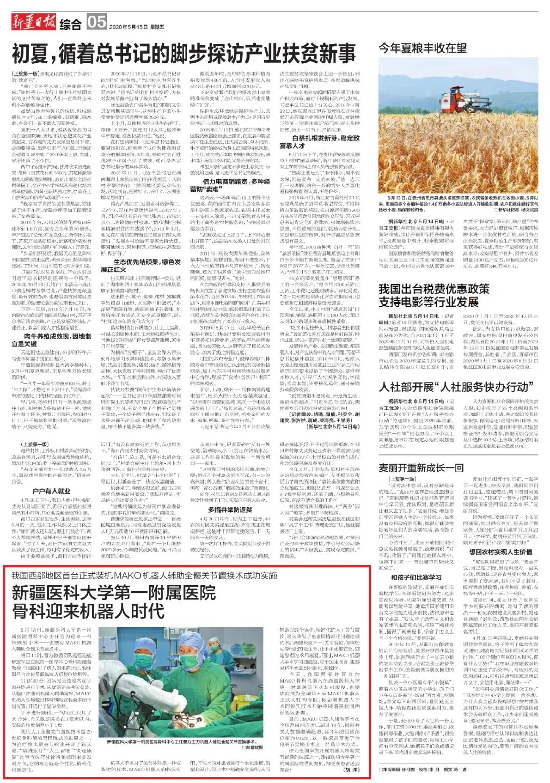 新疆日报:beat365中文在线官网第一附属医院骨科迎来机器人时代