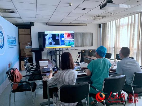 301骨科陈继营教授远程与beat365中文在线官网第一附属医院医生讨论机器人手术患者病情。彭理斌 摄
