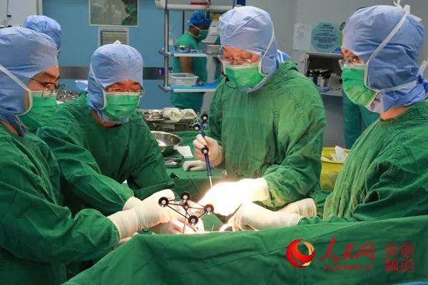 曹力主任(右二)主刀西北首台骨科机器人手术。彭理斌 摄