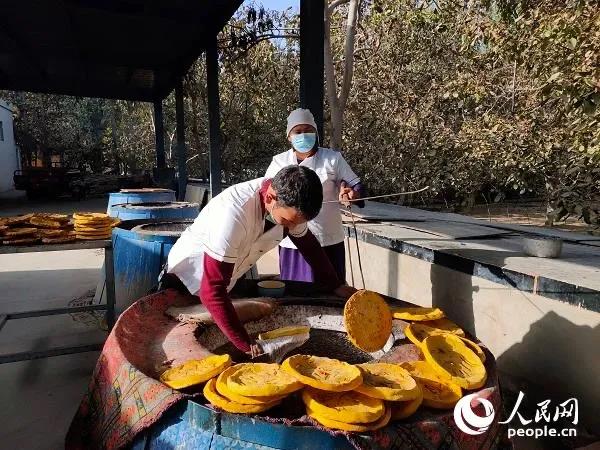努尔敦·乎皮丁带着工人加工包谷馕
