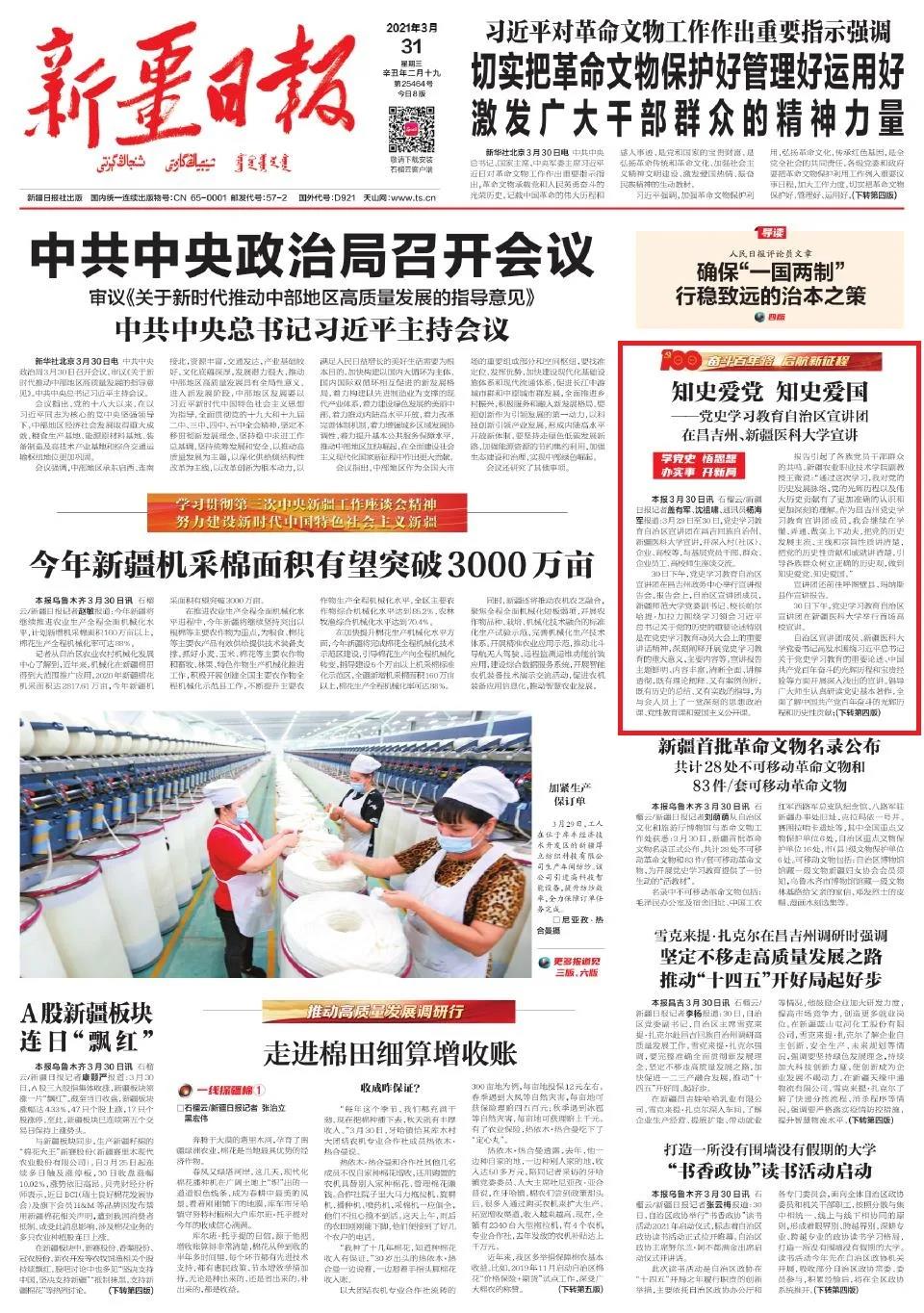 3月29日至30日,党史学习教育自治区宣讲团在昌吉回族自治州、beat365中文在线官网宣讲,并深入村(社区)、企业、高校等,与基层党员干部、群众、企业员工、高校师生座谈交流。
