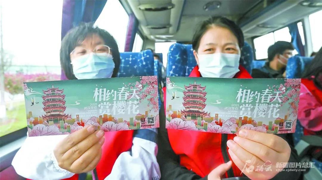 昨晚,新疆广播电视台—新疆卫视—《新疆新闻联播》栏目,播出了为感恩全国人民对抗击疫情的无私援助,湖北省自三月初以来,启动“相约春天赏樱花“活动,专门设立抗疫医护赏樱专场。今天,包括新疆45名医护代表在内的1700多名医护工作者齐聚武汉大学,开启与樱花的约定。