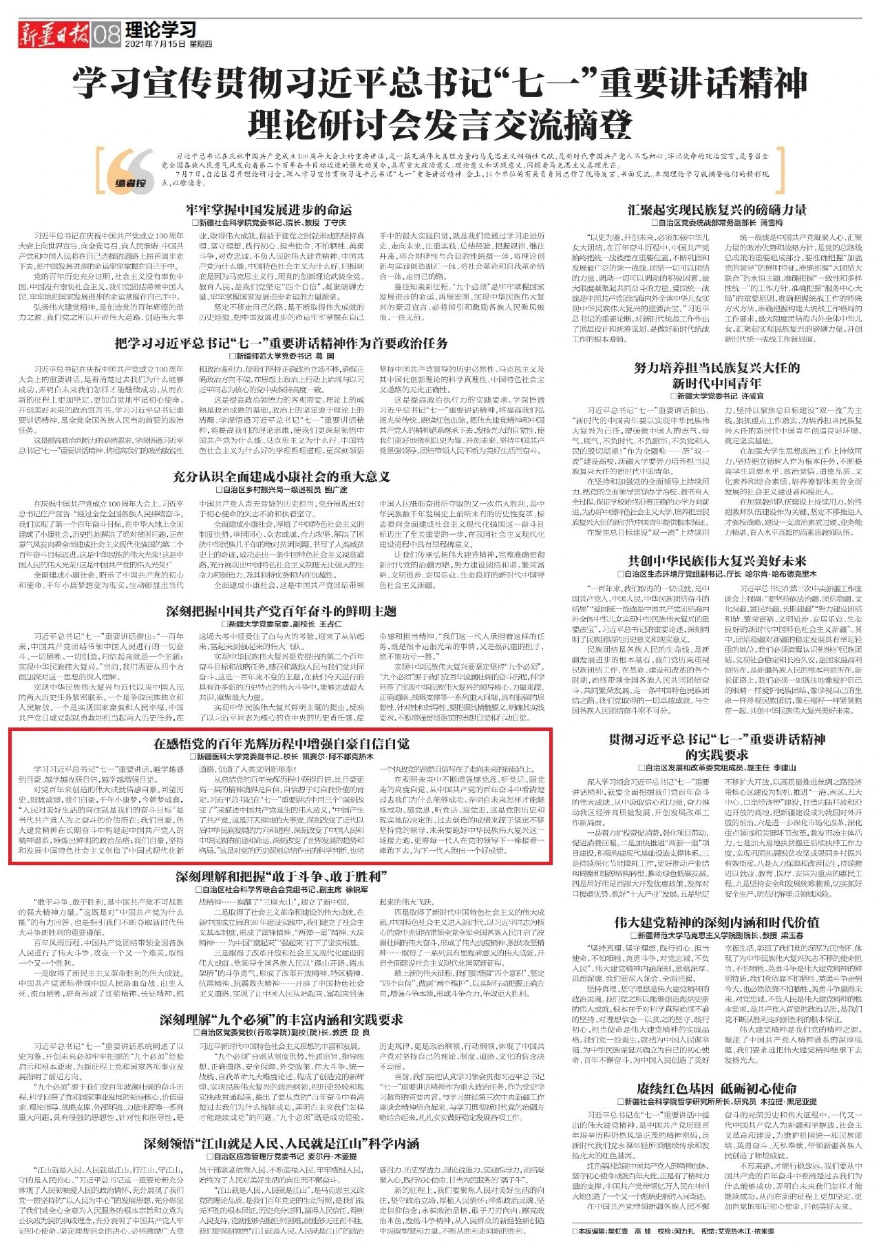 学习习近平总书记“七一”重要讲话,越学越感到自豪,越学越收获自信,越学越增强自觉。