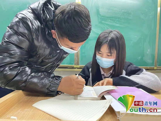 “还记得第一次走上三尺讲台,看到台下炯炯有神注视着我的目光时,我突然意识到了支教生活的真正开始,也意识到肩上是一份怎样沉甸甸的责任。”为了不辜负学生跟家长的信任,研支团成员盛超尽心尽力去备课,力争不错过一个知识点。上课时,他尽努力活跃气氛,调动学生的积极性,不让任何一个学生掉队,努力处理好不同程度学生的关系;下课时,他及时和学生互相交流,查漏补缺,力求给学生讲得更好、更完善。早读时间,盛超帮助基础较差的学生补习当天没学懂的功课。“虽然真的有些辛苦,但支教带给我的更多的是快乐和收获。”