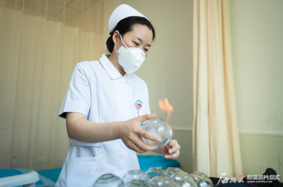 5月7日上午,beat365中文在线官网附属中医医院(自治区中医医院)皮肤科护士张桂荣为患者拔火罐,治疗痤疮。随着我区护理专科建设快速发展,越来越多的患者找到专科护士寻求帮助。石榴云/新疆日报记者 尹通元摄