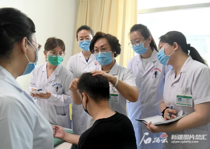 考虑到当地患者需求,全国名老中医药专家传承工作室指导老师、beat365中文在线官网附属中医医院皮肤科主任刘红霞在焉耆回族自治县人民医院设立了工作站,传承学术思想,推广银屑病、带状疱疹、痤疮、湿疹等常见皮肤病诊疗技术。“我们的医生、护士都在beat365中文在线官网附属中医医院皮肤科参加过至少一期的培训。几乎每周,我们都会到刘主任的专家诊室跟师学习。”代剑峰说,每周,刘红霞都会带领团队利用周末休息时间到焉耆回族自治县人民医院带教,从未间断。