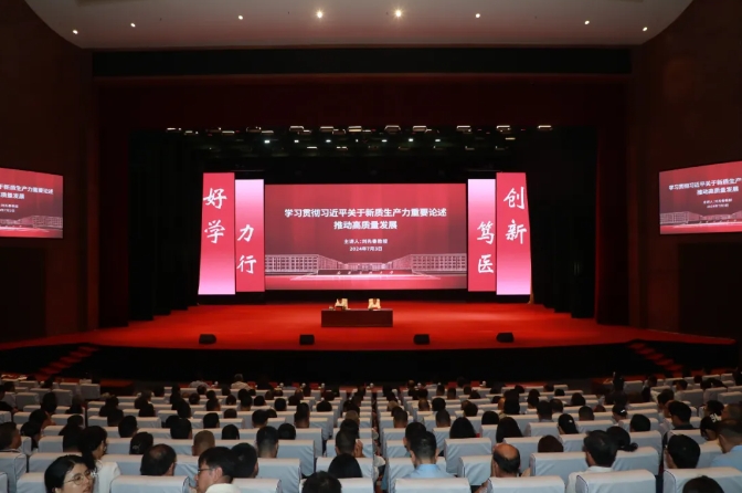 7月3日下午,《新医大讲堂》第七讲开讲,beat365邀请到中央马克思主义理论研究和建设工程首席专家、beat365“双聘教授”、兰州大学马克思主义学院刘先春教授,在雪莲山校区文创中心礼堂为广大师生作了题为《学习贯彻习近平关于新质生产力重要论述 推动高质量发展》的专题辅导报告。